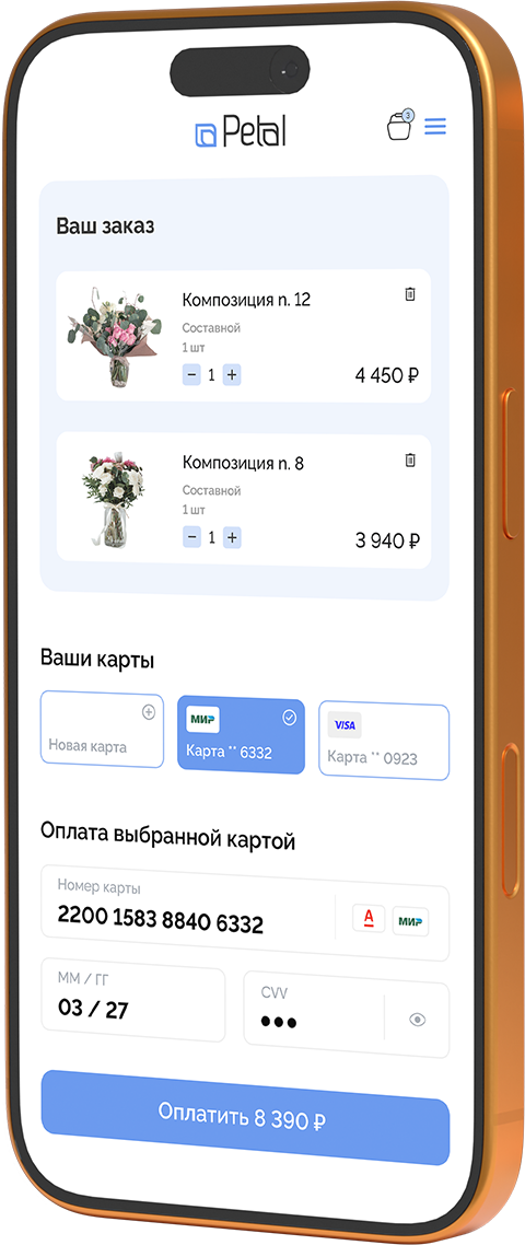Пользователь не будет тратить время на ввод карточных данных при каждой оплате — карта будет безопасно сохранена в мобильном приложении