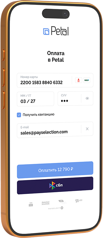 Онлайн-касса PayKassa работает работает с любыми платежными средствами: банковскими картами, СБП и другими способами приема платежей